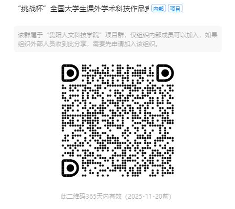 注:以上时间和相关安排将会根据全省、全国相关赛事通知进行调整,届时将会在校团委官方微信公众号(望星青年)和钉钉群内通知,有意愿指导和参加“挑战杯”的老师和同学可以加入交流群。