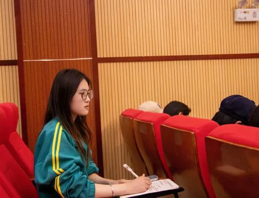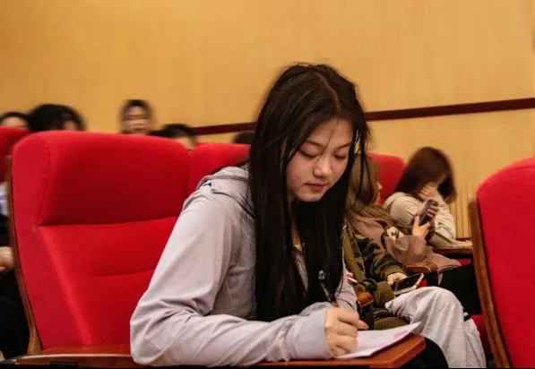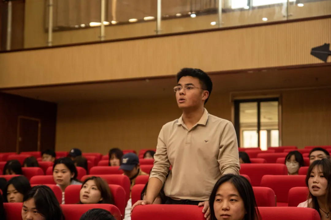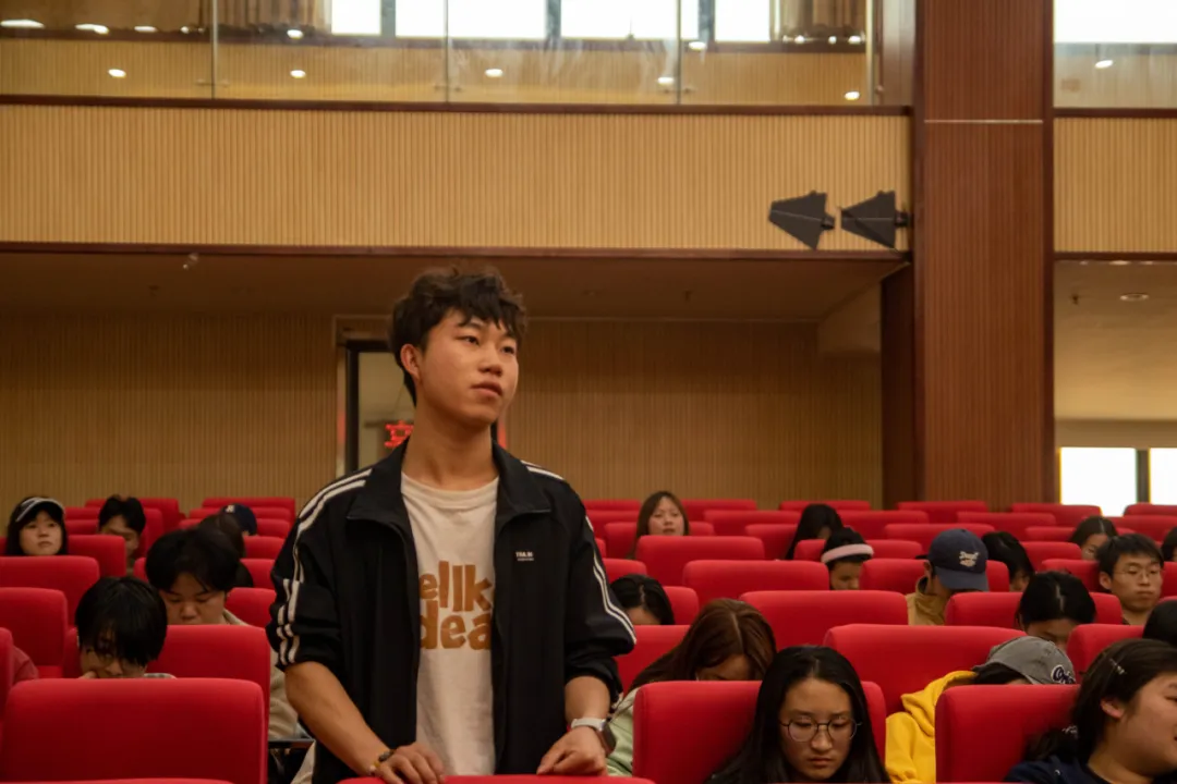 互动环节,同学们踊跃提问。针对“大学期间应掌握哪些视频创作技能”,于庆阳导演分享文案撰写、镜头语言技巧,并推荐实用AI工具。针对“纪录片行业前景”的担忧,他从文化价值和社会意义出发,指出纪录片受众稳定,建议关注热点与小众文化挖掘题材,借新媒体推广,创新叙事形式吸引年轻观众。 讲座现场 杨尼霞摄 学生提问 杨尼霞摄 此次讲座圆满成功,于庆阳导演结合自身实践经验,为同学们带来宝贵的学习契机。他以深厚的专业功底和丰富行业经验,深入剖析视频创作核心要点,不仅拓宽了学生的创作思路,还为提升创作效率提供新方向,助力新葡萄学子在视频创作道路上行稳致远。