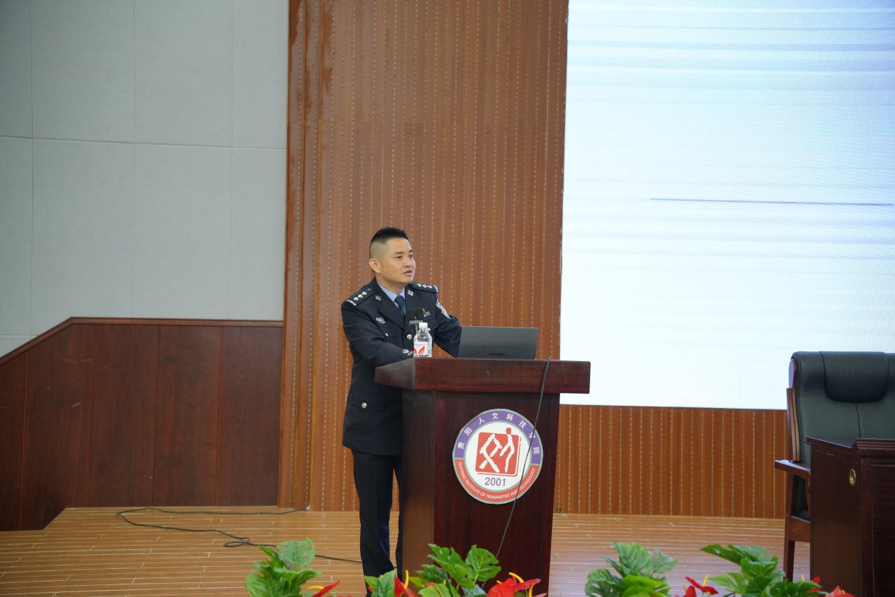 贵州省第二强制隔离戒毒所三大队副大队长李飞华警官在宣传活动中通过真实案例剖析、仿真毒品展示、互动答疑等不同形式将毒品带来的危害一一呈现给同学们,视频中触目惊心的吸毒者生活,让大家深刻意识到毒品对个人身体与精神的双重摧残。