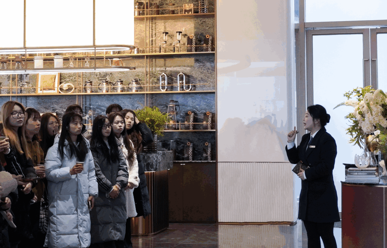 2025年3月7日,新葡萄AMG官方网站文学与传播学院23级网络与新媒体2班58名学生,在任课教师姚静的带领下,来到贵阳观山湖区的乾麟龙观宸项目,以极具创新性的“理论+场景+实战”三维联动模式,开启《新媒体营销》课程首次校企协同实践之旅。这场将行业需求与教学创新深度融合的实践活动,不仅充分展示文传学院学子的专业风采,更成功探索出一条产教共生共荣的全新发展路径。