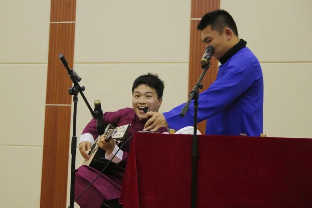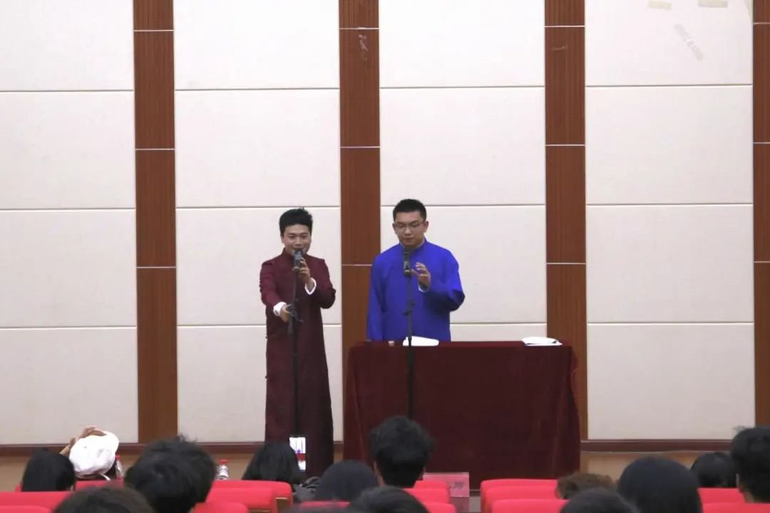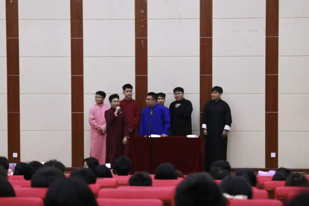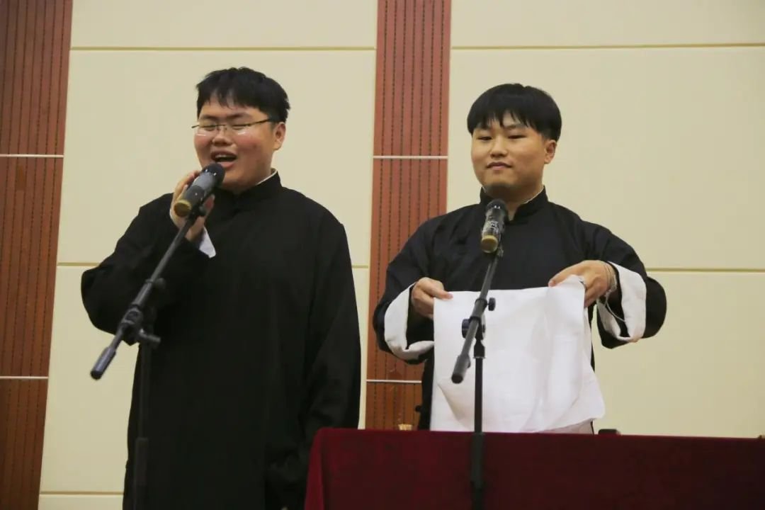 由马文寿和龙熙带领的相声小组用语言的艺术表达同学们对新葡萄AMG官方网站22周年校庆周的祝贺,用欢乐的氛围缓解夏日的炎热。