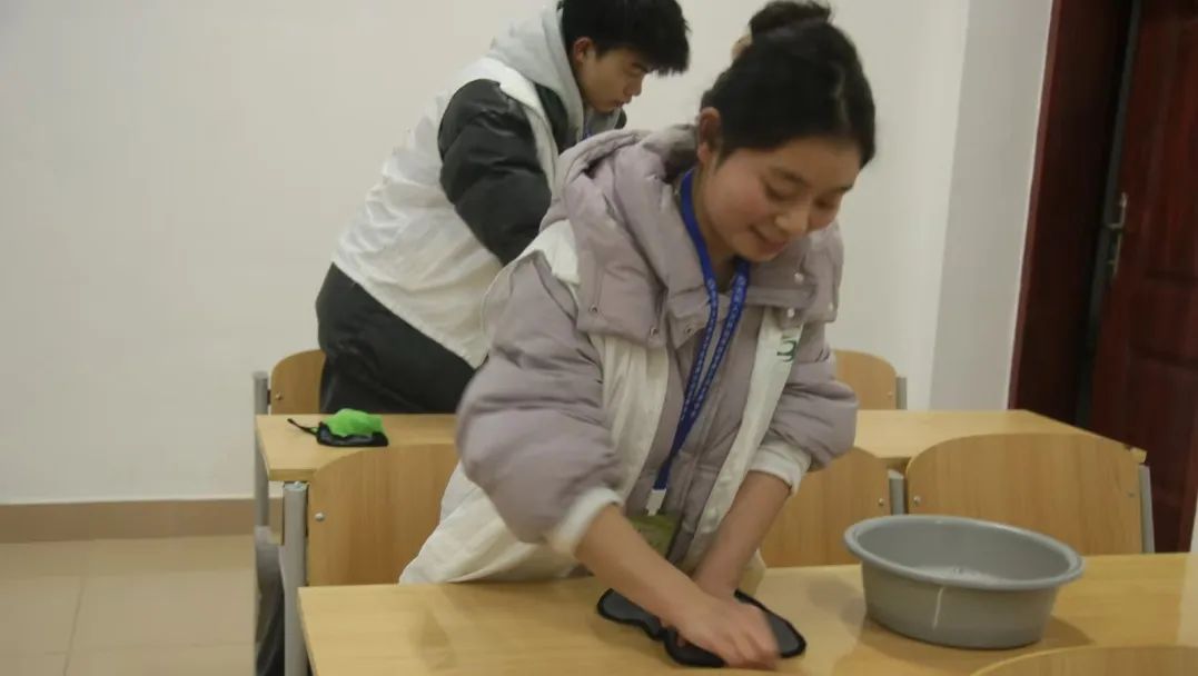 活动中,志愿者们在小组长的带领下,分工明确,有条不紊地开始了清洁工作。课桌椅上的涂鸦、墙壁上的污渍、校园角落里的杂物……这些看似微不足道的细节,却在志愿者们的努力下焕然一新。虽然过程中有些辛苦,但看到干净整洁的校园环境,大家都露出了欣慰的笑容。