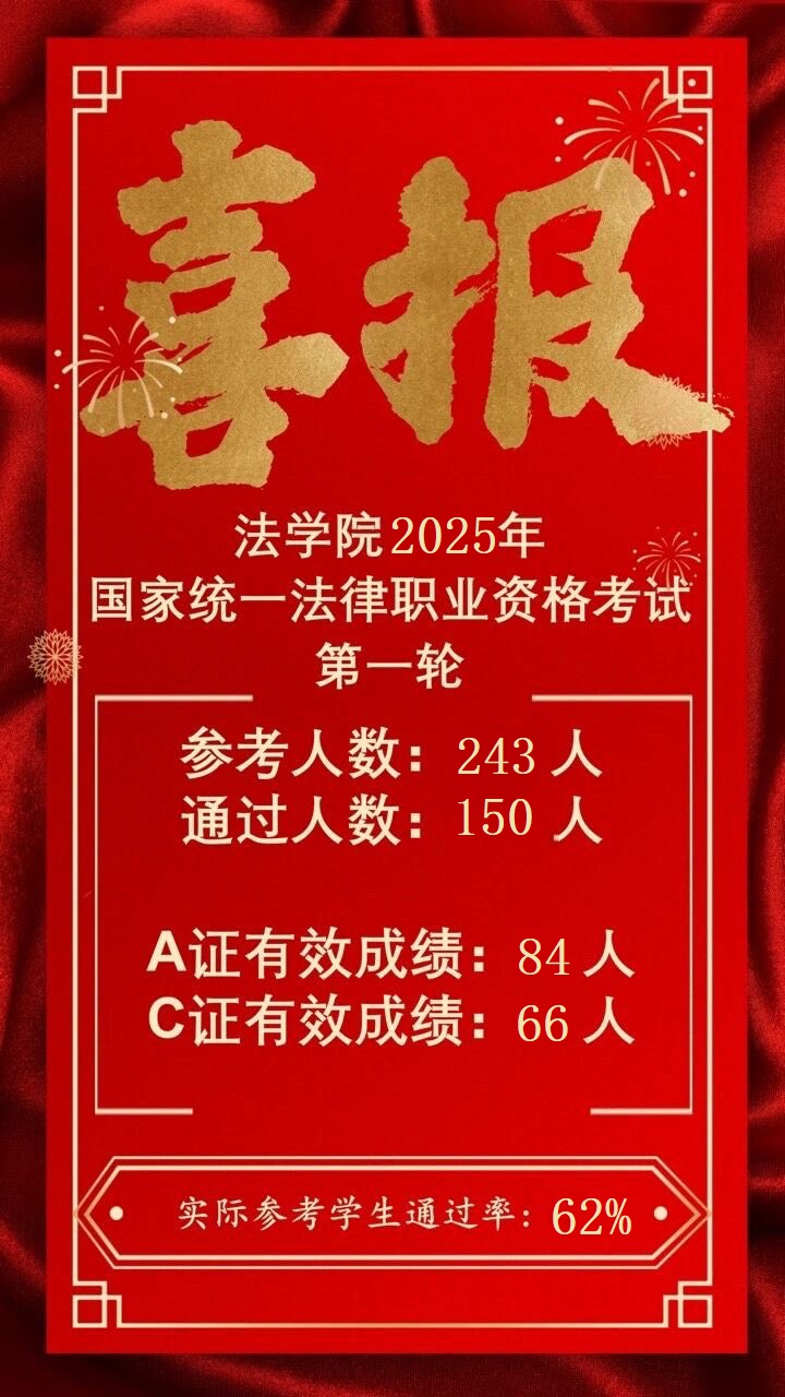 喜报|2025年法考客观题考试,新葡萄AMG官方网站法学院法考再创佳绩