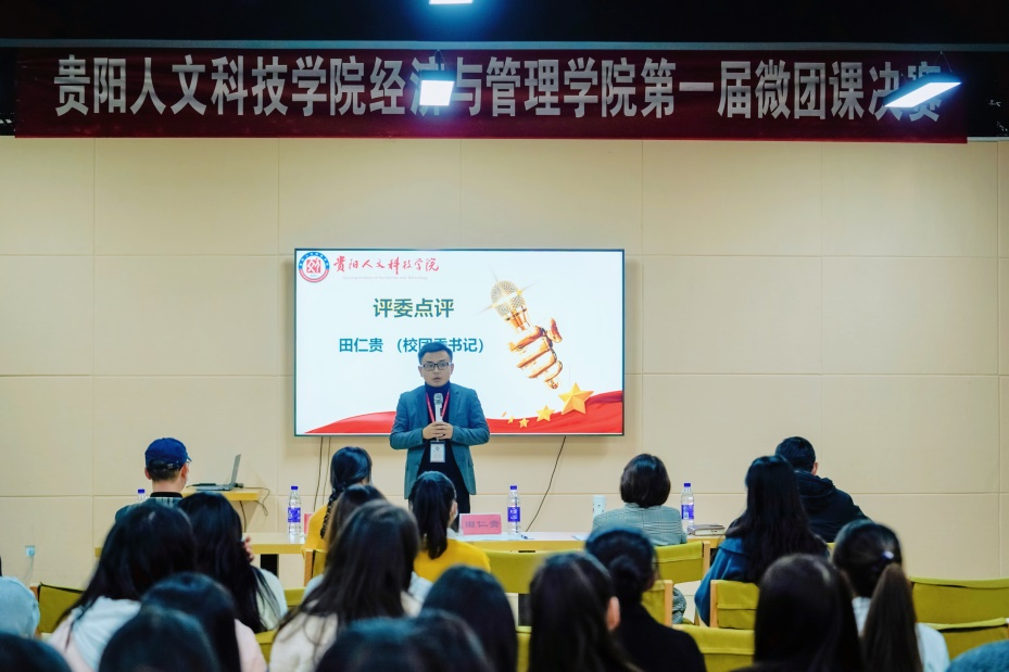 11月2日14:00,由经济与管理学院党总支主办,经济与管理学院团总支承办的“贵阳新葡萄科学学院经济与管理学院第一届微团课大赛”在自信楼107路演厅成功举办。经过初赛激烈的角逐,共有十二支队伍进入决赛。本次决赛邀请校团委书记田仁贵,经济与管理学院党总支副书记田丹、吕渊,经济与管理学院辅导员唐卿、罗鹃担任评委。由2020级行政管理1班团支部张婷婷主持。