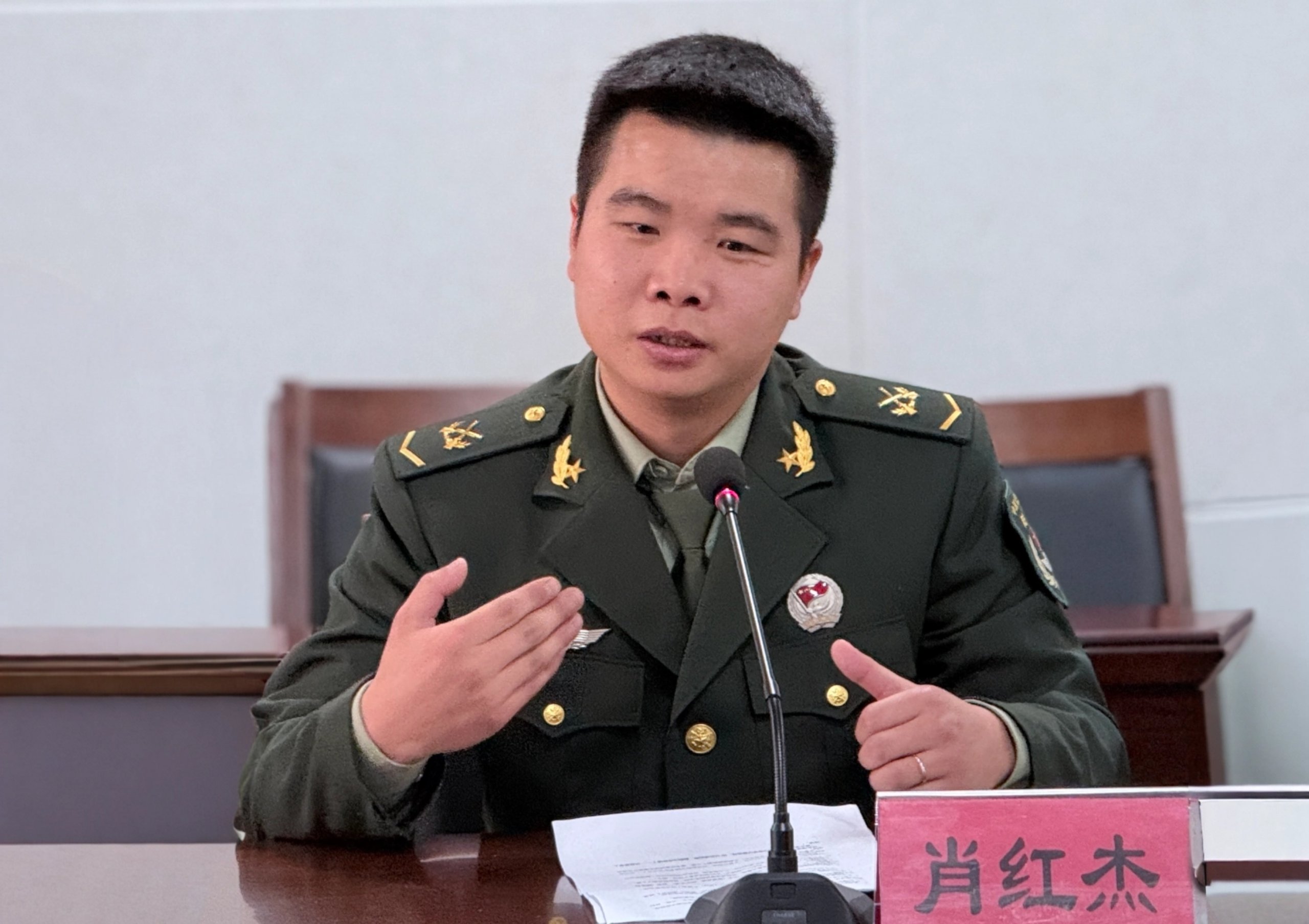会议最后,退役复学学生肖红杰结合自身经历,从初入军营时面临环境适应挑战、服役期间的发展路径及个人成长收获三个方面,向同学们客观分享了军营生活的真实图景。他讲到:新兵训练阶段的队列操练、体能强化等内容,有效锤炼了自身意志品质与团队协作能力;服役期间,军队实行定期考核制度,成绩将直接影响岗位分配与发展路径,建议有意参军者提前加强体能储备与理论学习;五年服役期在有效减轻家庭经济压力的同时也切实提升了家庭自豪感。互动环节中,肖红杰就军事技能学习重点等问题给予务实建议,帮助同学们理性规划参军路径。