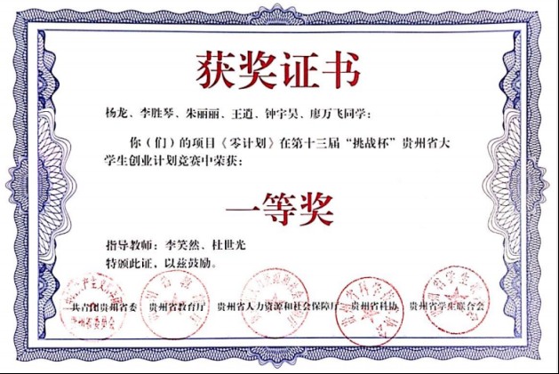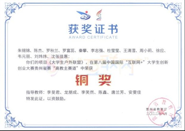 2022年8月,朱锡锦的团队又凭借《大学生户外联盟》项目在第十三届“挑战杯”贵州省大学生创业计划竞赛中获三等奖;2020级休闲体育专业学子杨龙的团队凭借《零计划》项目斩获一等奖。