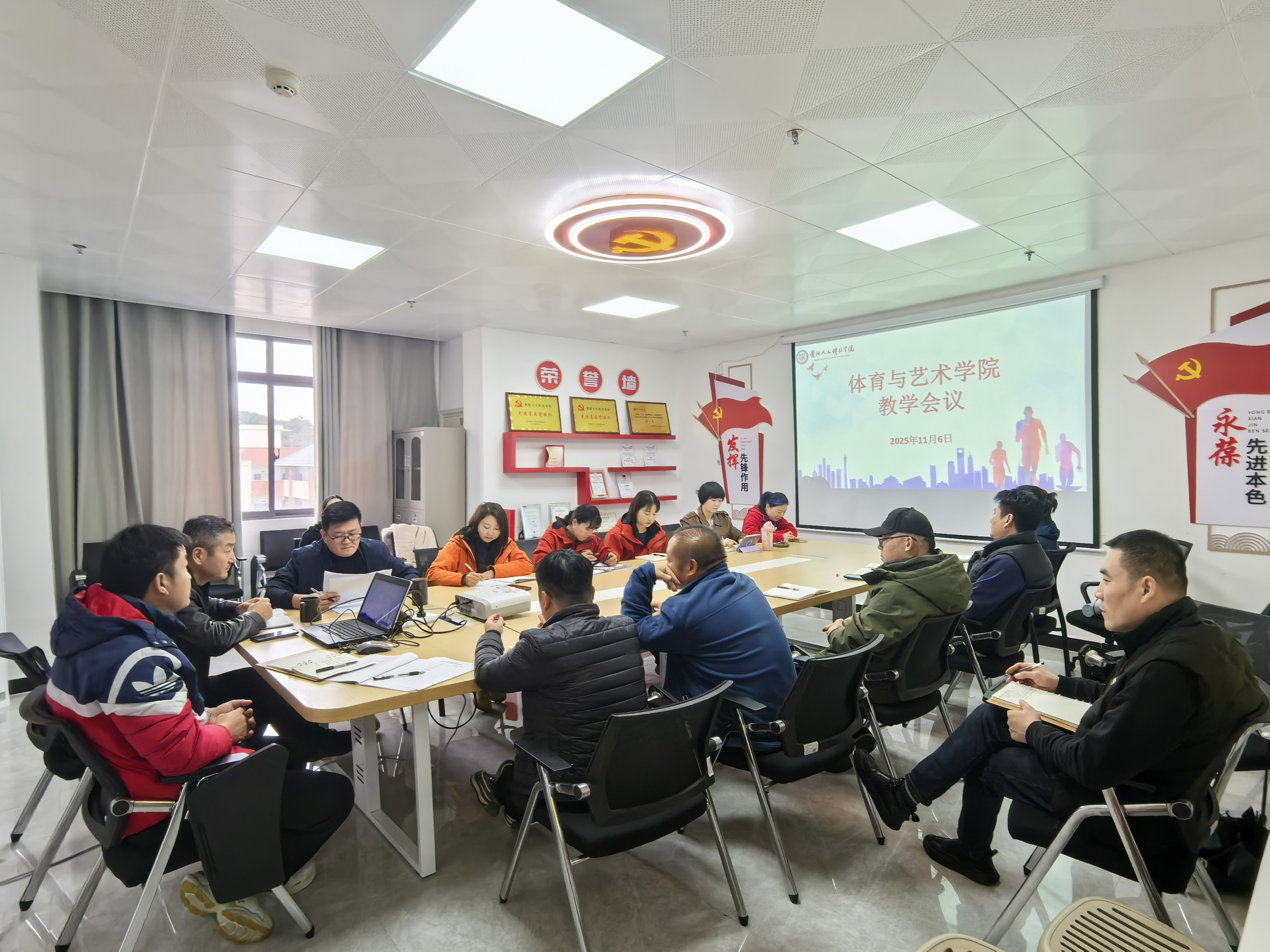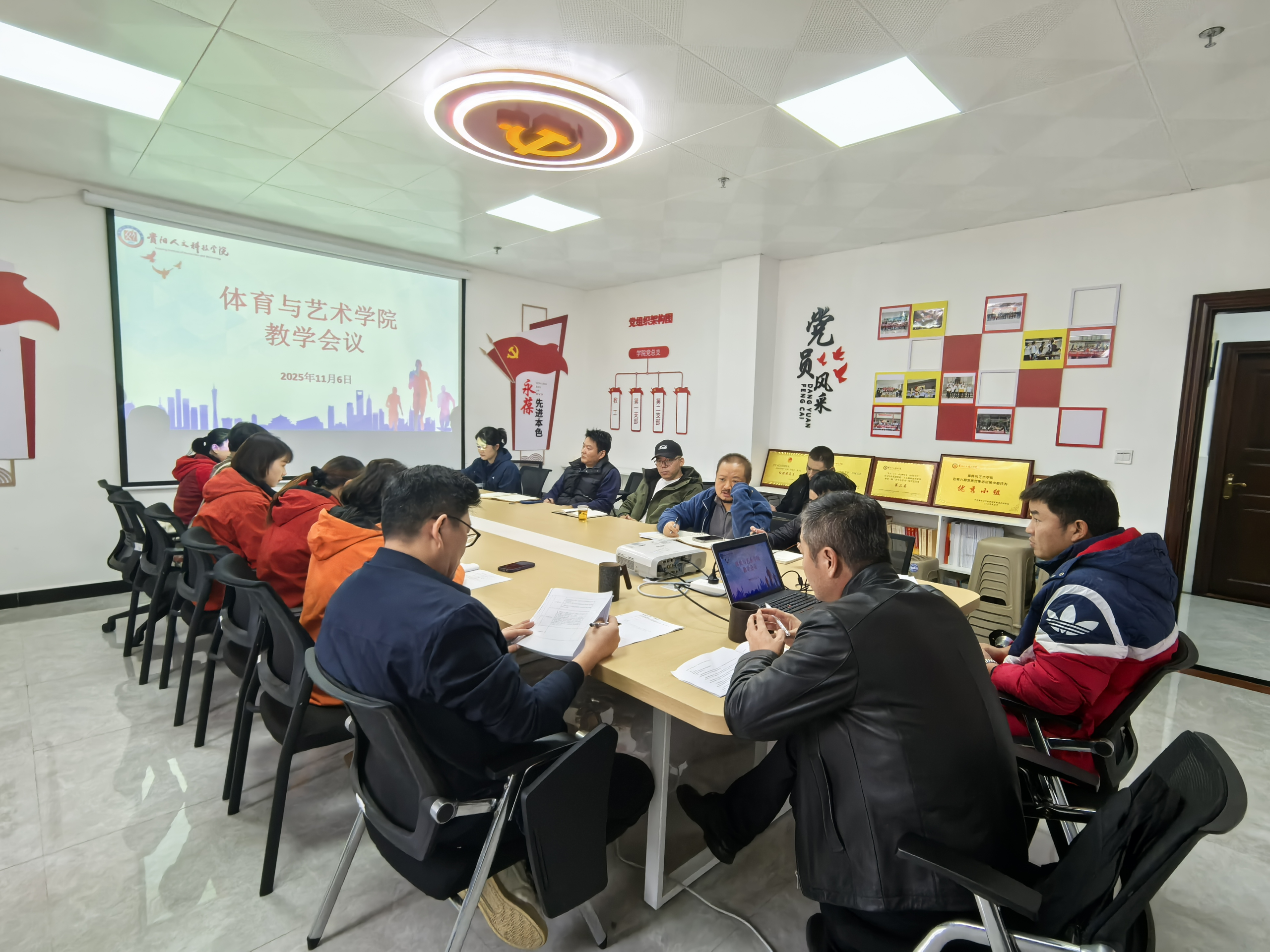 2025年11月6日,体育与艺术学院在师德楼910组织召开了2025年下半年第二次教学例会,会议由学院院长王雪主持,学院党委书记张健、副院长赵金亮、教研室主任及教学秘书参加了会议。