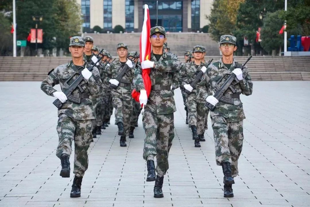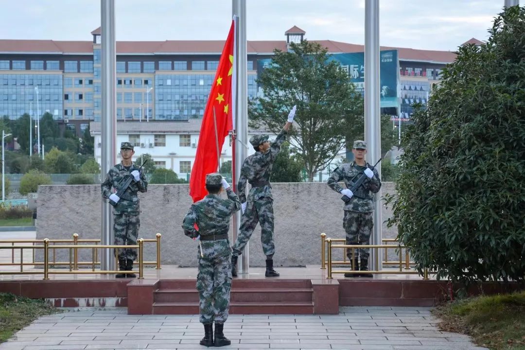 早上7:00,升国旗仪式正式开始。国旗护卫队的同学们迈着整齐划一、铿锵有力的步伐,护送着五星红旗正步走向旗台。随着激昂的《义勇军进行曲》响起,全体师生面向国旗行注目礼。五星红旗在大家的注视中冉冉升起,在熠熠晨光中迎风飘扬。