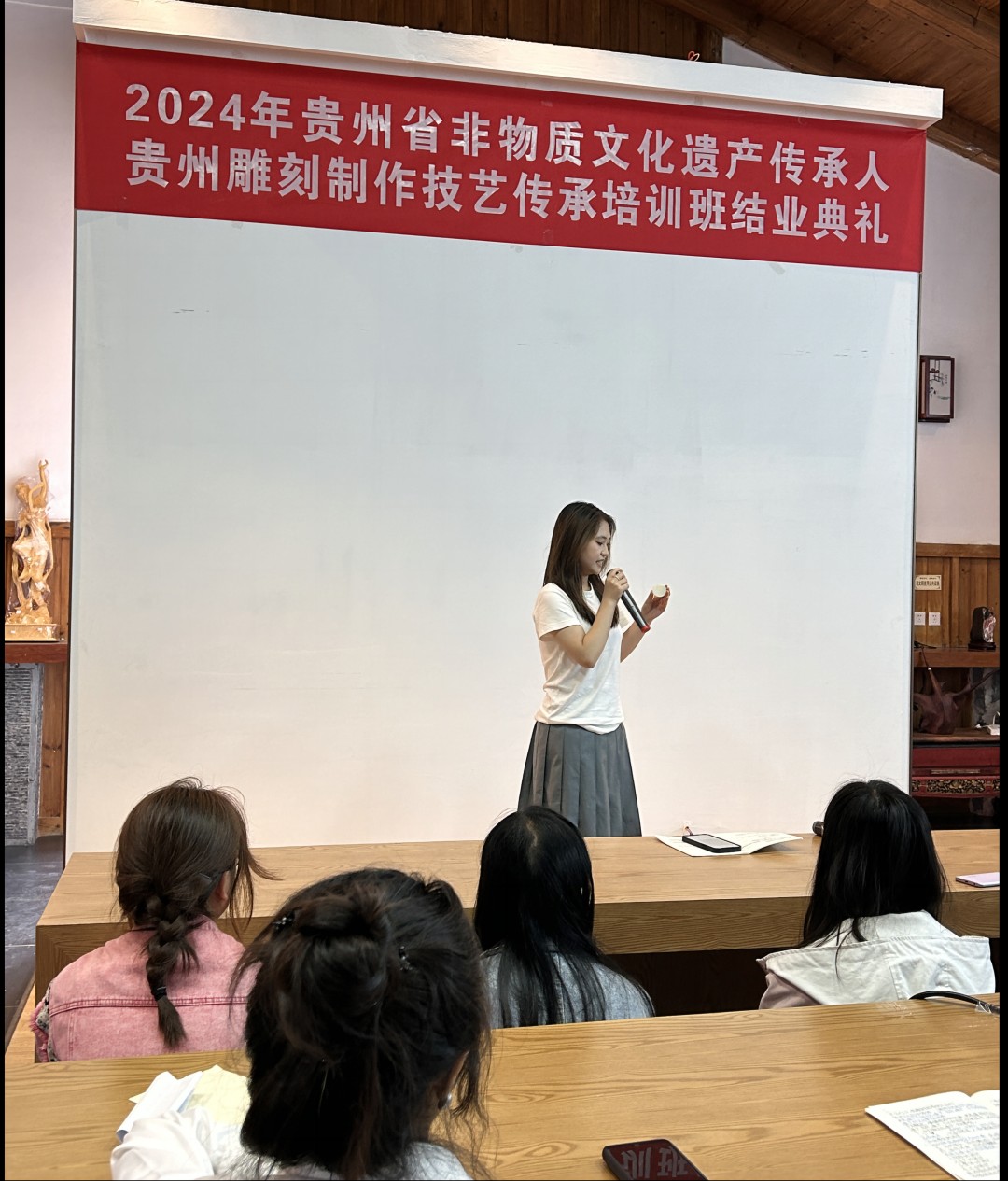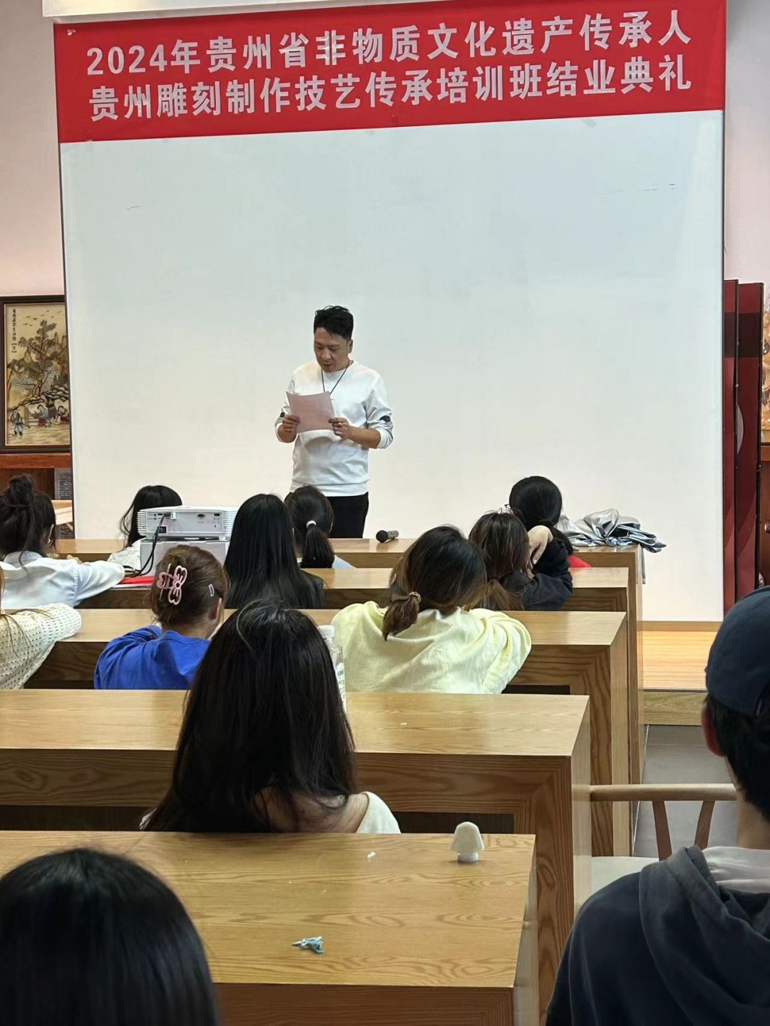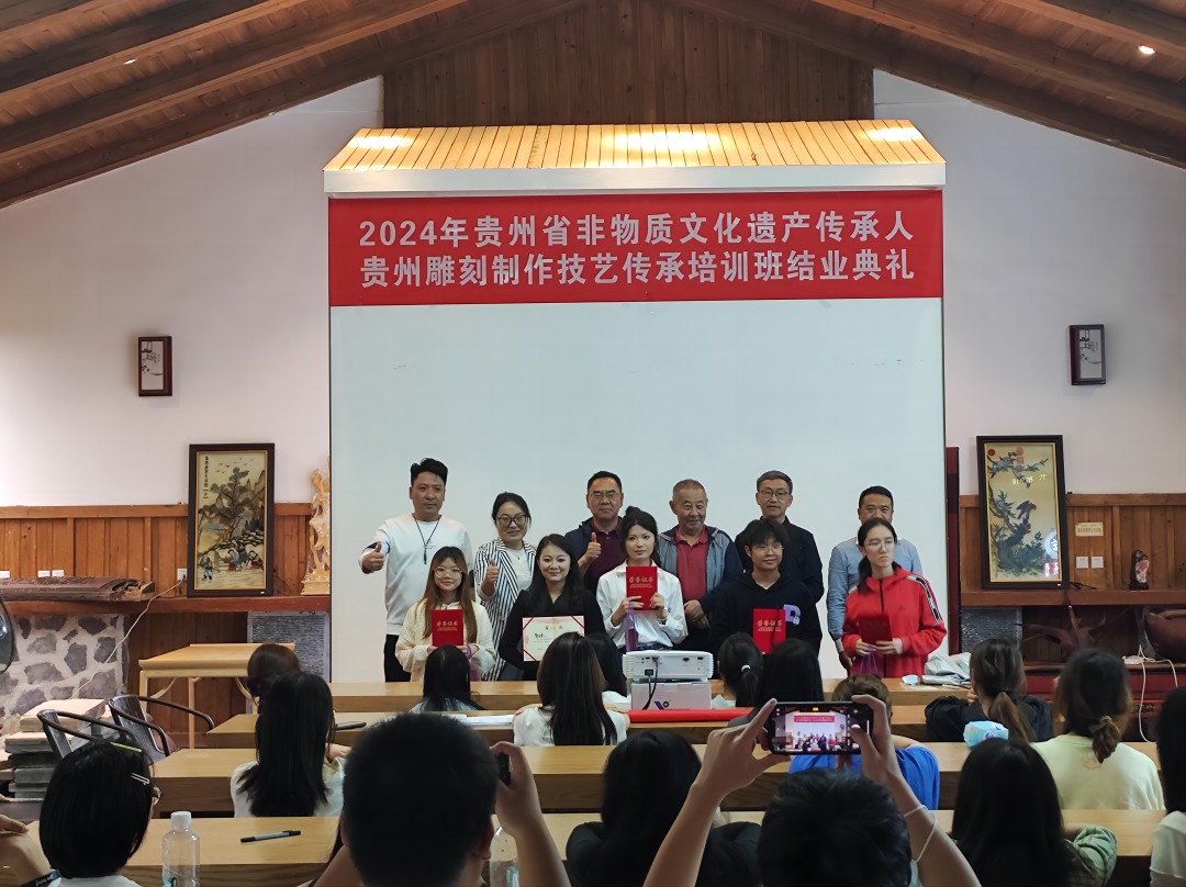 为更好地了解非遗文化,提高非遗技艺的实操能力,培养师生非遗传承意识。我院联合贵州黔艺宝文化艺术发展有限公司开展的贵州雕刻制作技艺传承培训在经过10天的紧张学习和实践操作后,2024年6月26日下午顺利结班。本次培训旨在传承和弘扬雕刻技术,培养更多的雕刻人才,为雕刻行业注入新活力,积极探索“大师进课堂,学生进大师工作室”的实践教学模式。