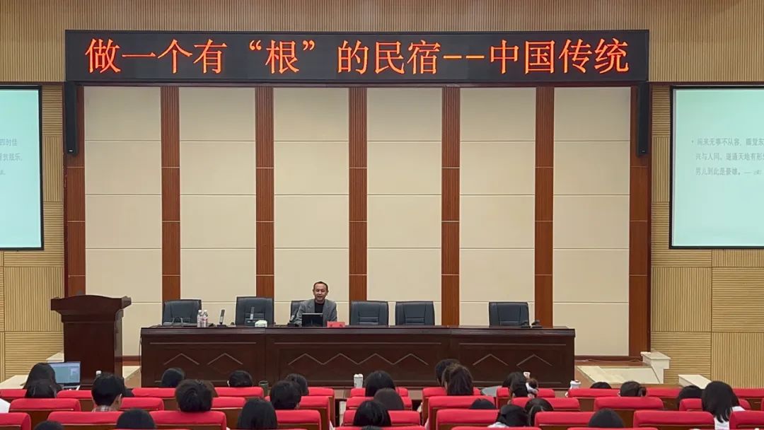 在随后的互动环节,王兵先生还进一步与师生交流了自己对“地方文化在民宿中的取舍”“民宿管家需要哪些特质”等问题的看法,并现场进行品牌宣讲,热情邀请同学们以观摩学习、假期学习、实习就业等各种方式进一步了解匠庐品牌、切身体悟民宿产业。