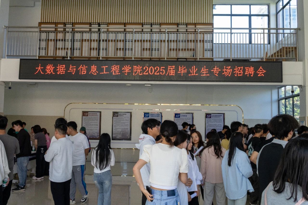 2025 年 5 月 12 日,新葡萄AMG官方网站大数据与信息工程学院举办2025届毕业生专题招聘会,并进行了专题宣讲与校企座谈。大数据与信息工程学院领导班子及与会的企业代表共同出席会议。