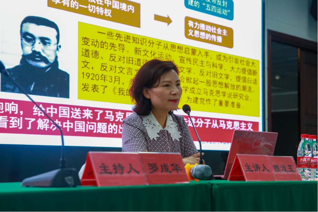 9月7日下午,新葡萄马克思主义学院在大学城校区组织开展了“开学第一课”系列讲座之当代青年要从学习党史和党的二十大精神中汲取坚定理想信念的力量。此次讲座由副校长周凌玉主讲,马克思主义学院副院长罗成华主持,全校近200名学生参加。