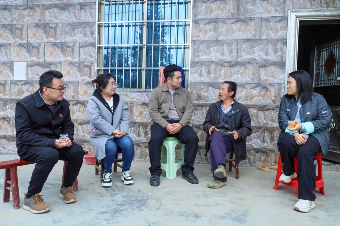 张烨同志带领学生党员队伍进行入户探访,心怀敬畏与憧憬,步入当地老党员的家门,围坐在老党员身旁,倾听他们深情讲述困牛山的英雄史诗。在座的每个人都全神贯注,被老党员们的亲身经历深深触动,满怀对革命先烈的崇敬与怀念。