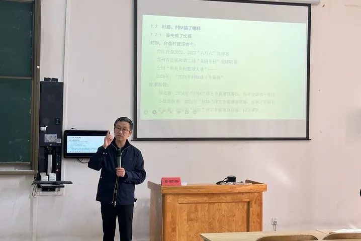 金颖若教授以“村超、村BA——新时代文化旅游与乡村振兴的创新实践”为主题,从“是什么——做什么——凭什么”展开讲解,向师生深入描绘中国式现代化的“两江”实践。他指出,中国式现代化是全体人民共同富裕的现代化,是物质文明和精神文明相协调的现代化。村超、村BA的举办,拉动了当地的经济发展,丰富了当地村民的精神生活,是中国式现代化的生动诠释。本次宣讲主题鲜明,引经据典,旁征博引,既有政治高度,又有理论深度。金颖若教授以其深厚的理论功底、形象生动的事例和风趣的语言进行讲解,现场气氛活跃,师生党员踊跃参与、积极回答。